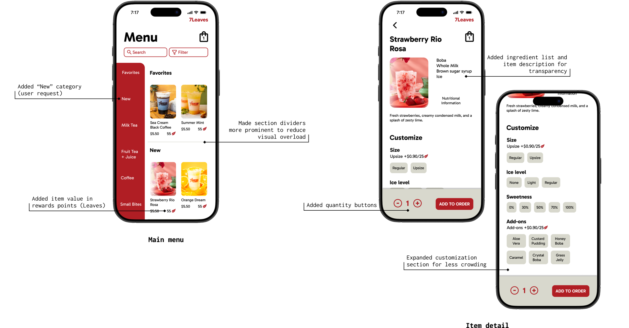 Today, customers have high expectations for the mobile ordering experience. 7Leaves’ current app has numerous opportunities to improve its ease of use and visual appeal.