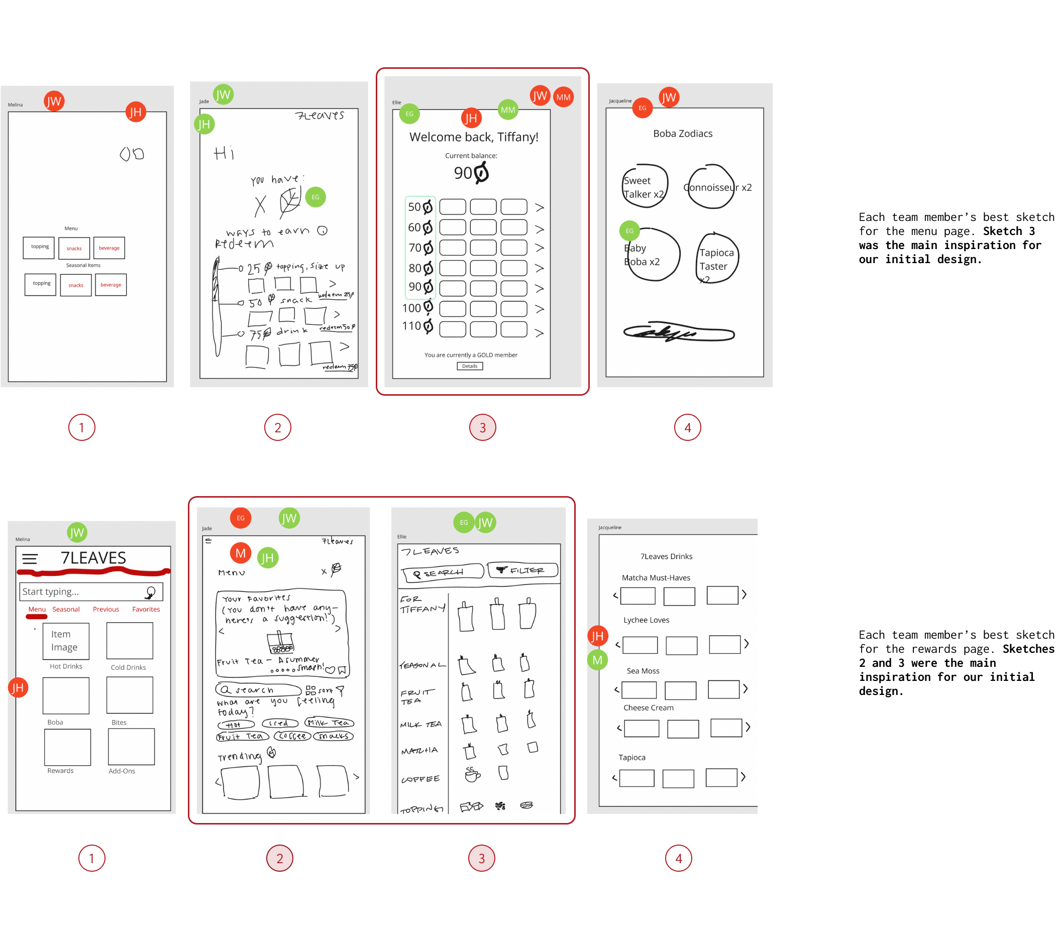 Guided by my team’s sketches, I designed prototypes for our first two objectives, working from low fidelity to high fidelty.