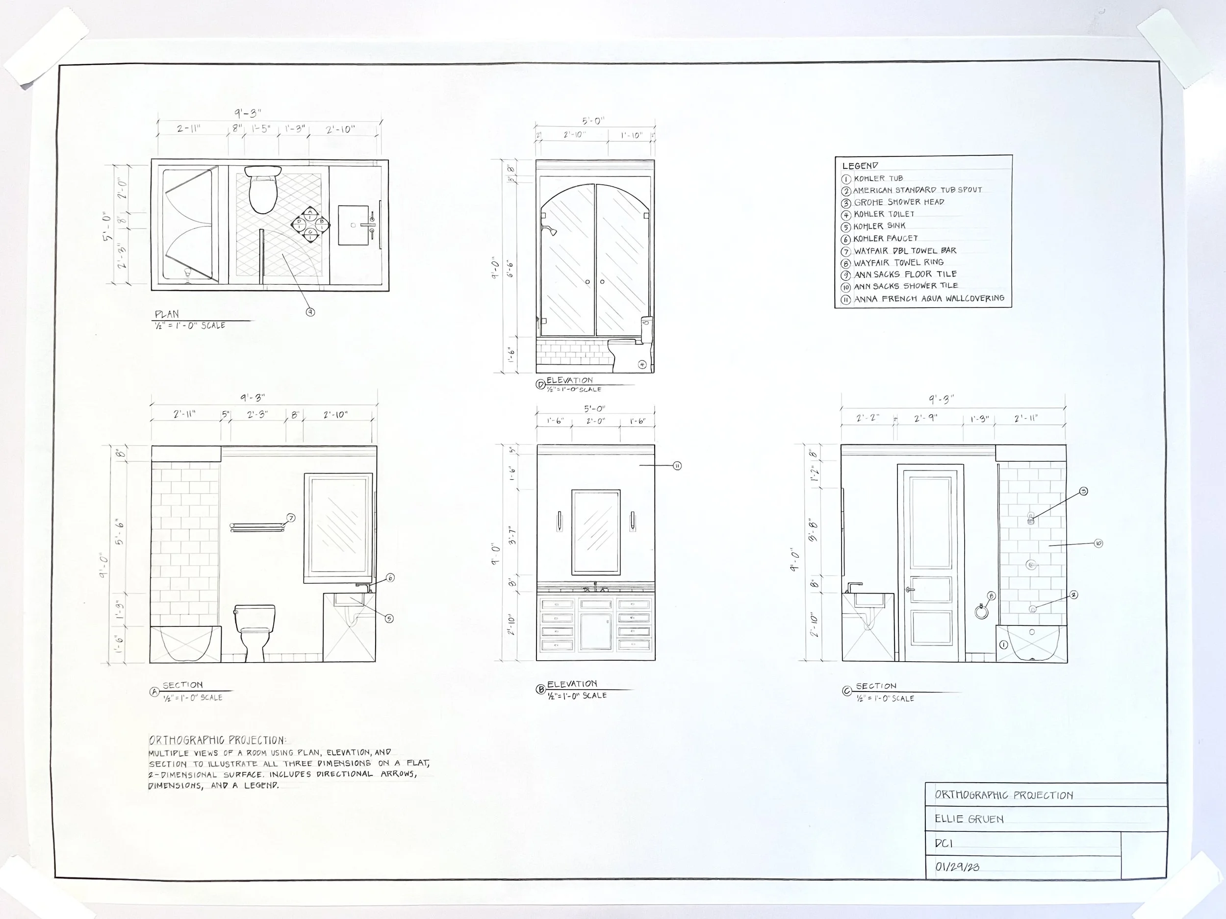 Drafting work I completed while taking interior architecture courses at UCLA Extension.